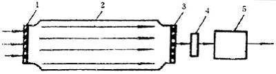 1-入口膜;2-衰變筒;3-出口膜;4-流量計(jì);5-抽氣泵